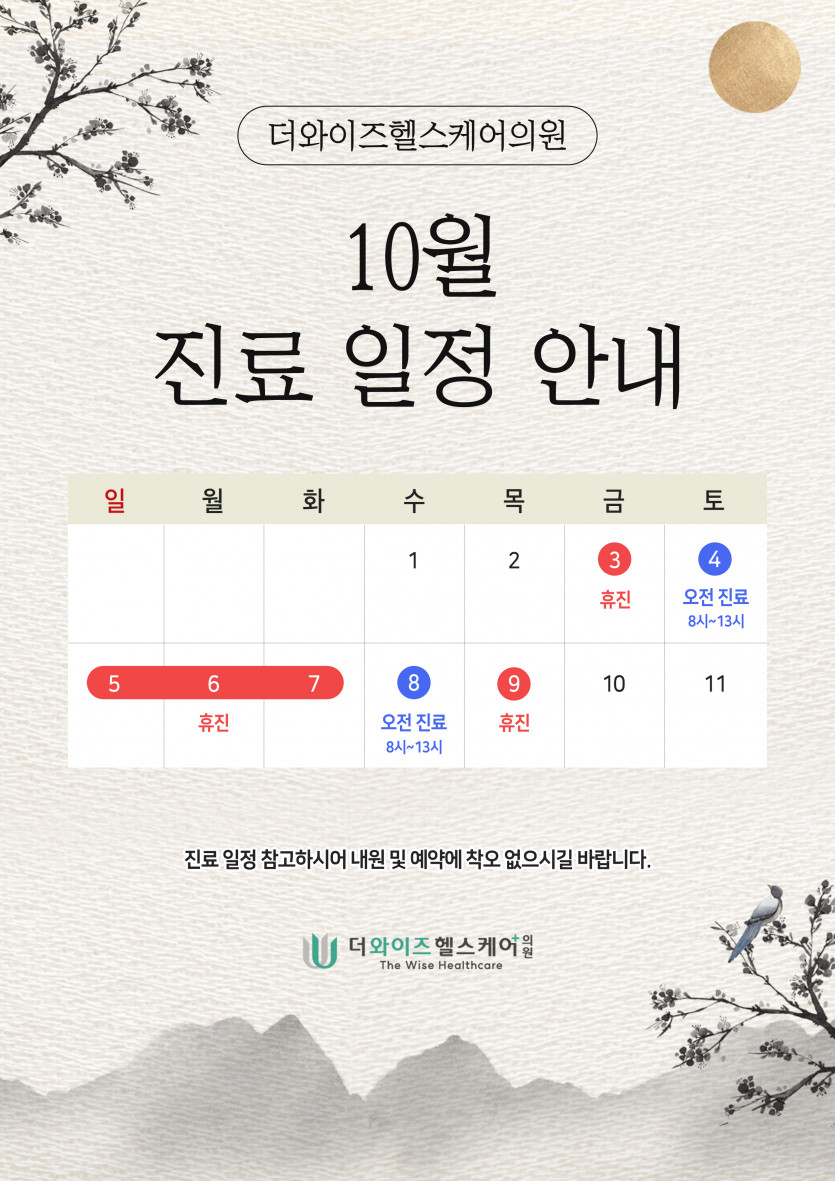 더와이즈헬스케어의원 10월 진료 일정 안내!