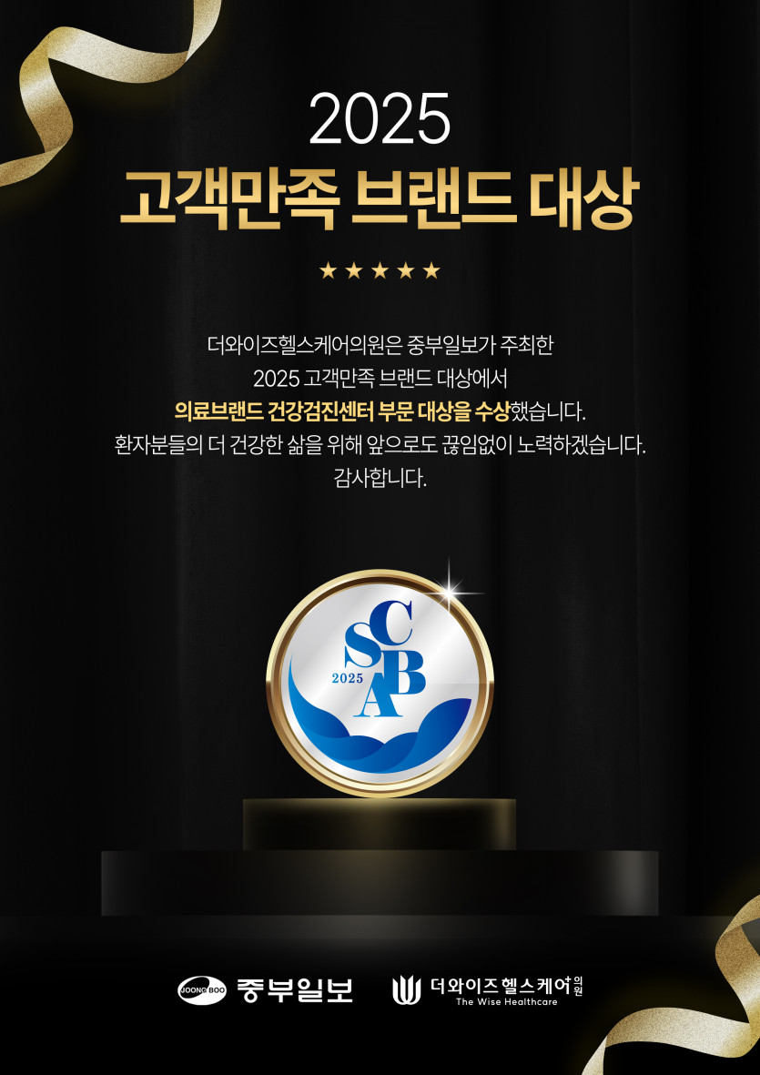 더와이즈헬스케어의원이 2025 고객만족브랜드대상(건강검진센터 부문)을 수상했습니다.